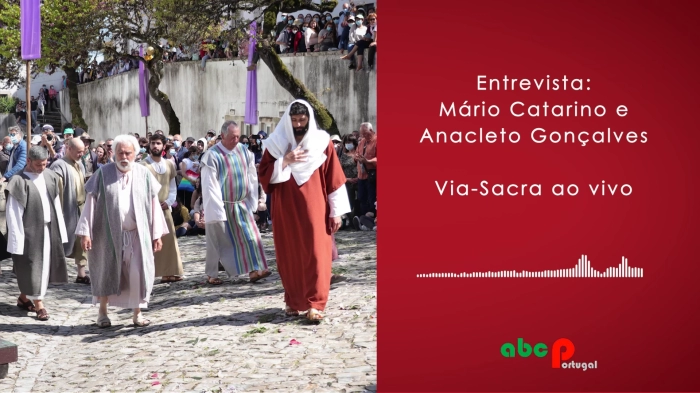 Jorge Martins em entrevista a Mário Catarino e Anacleto Gonçalves, a propósito da realização de mais uma edição da encenação da Via-Sacra ao Vivo na Vila Medieval de Ourém, Sexta-feira Santa, dia 18, às 15:00h.